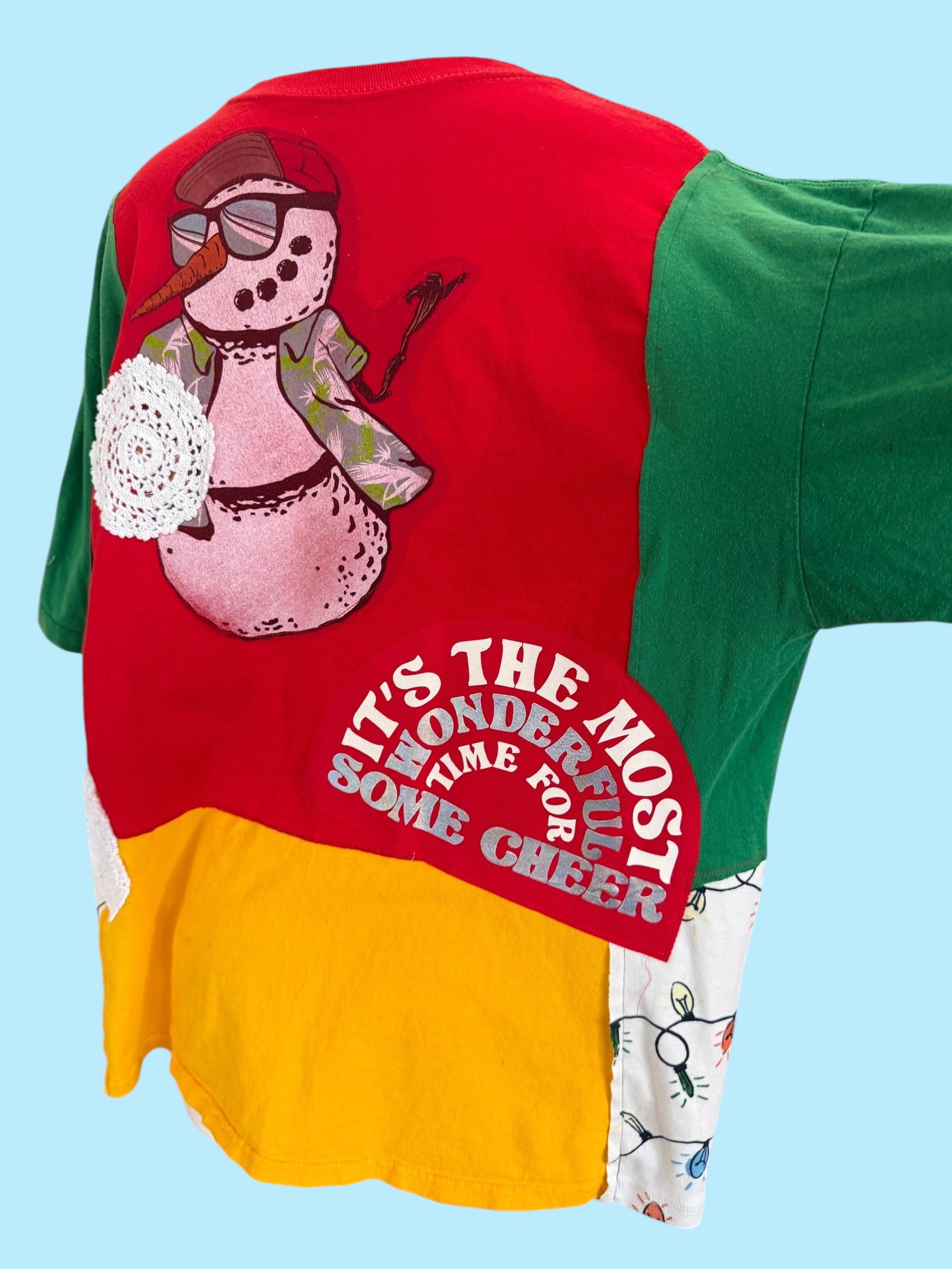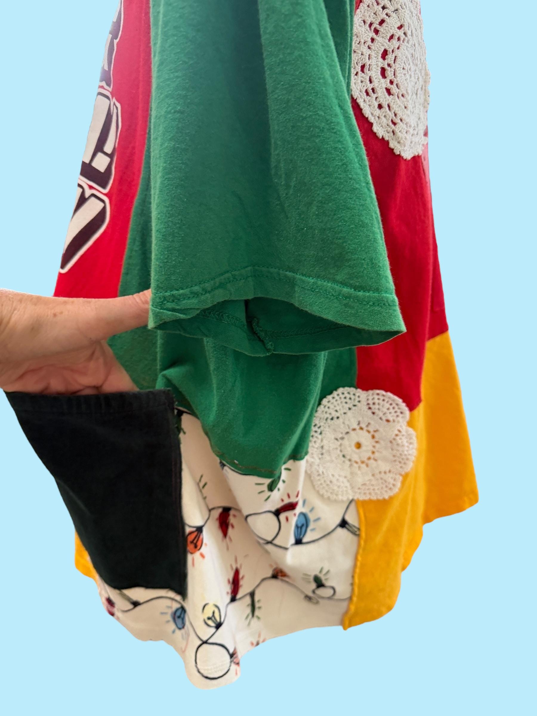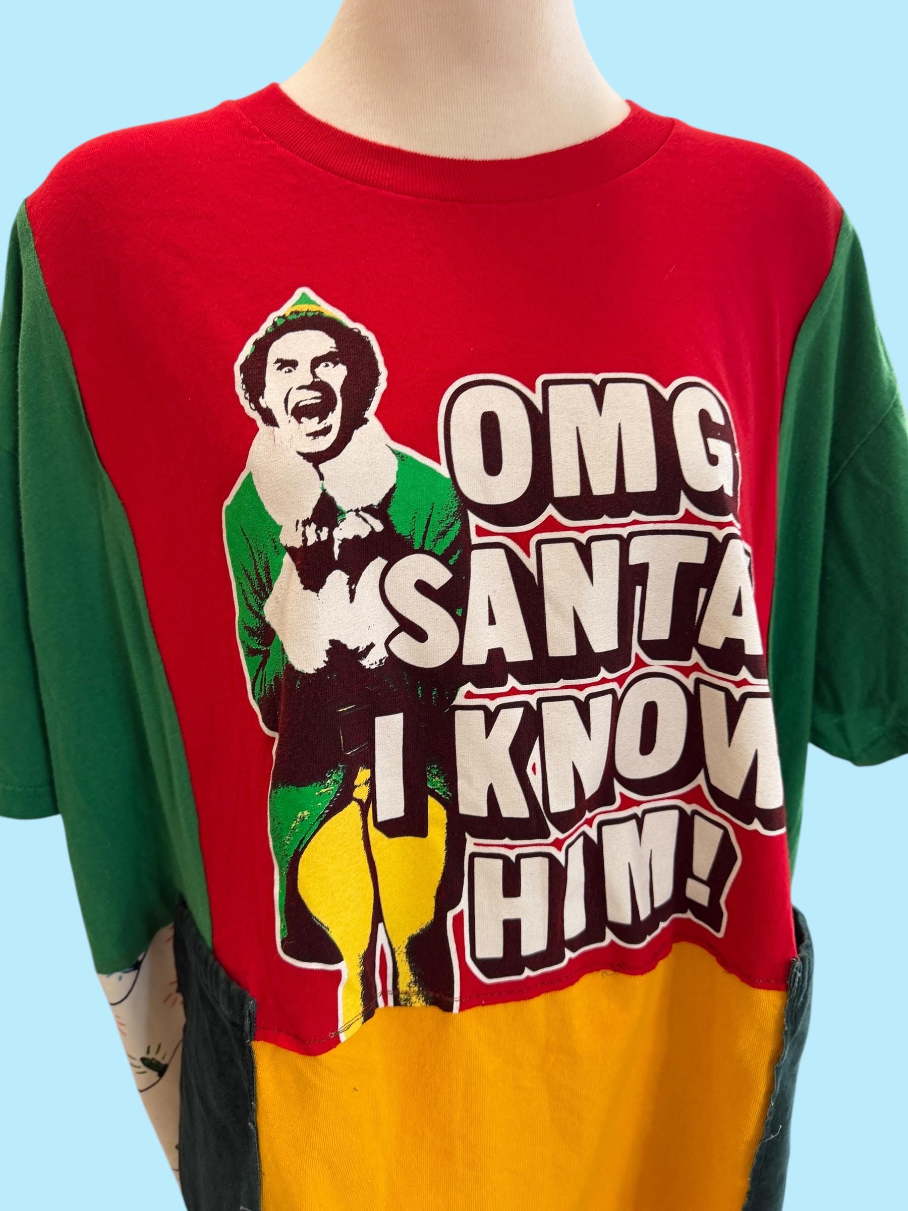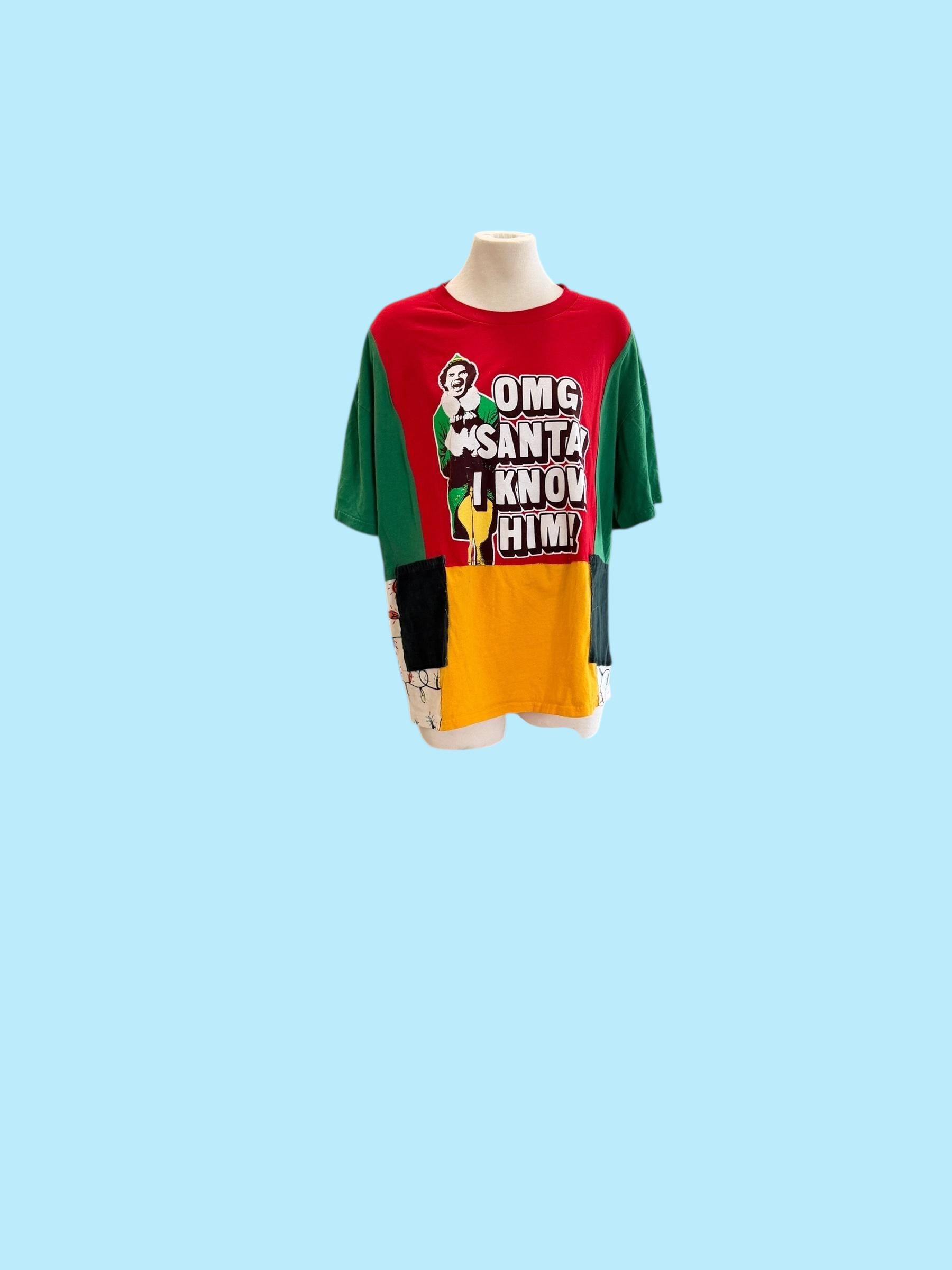 This Elf graphic t-shirt was up-cycled with Ugly Crazy holiday Party in mind. Some girls run hot so this would be perfect instead of a hot sweater, plus it's OOAK.