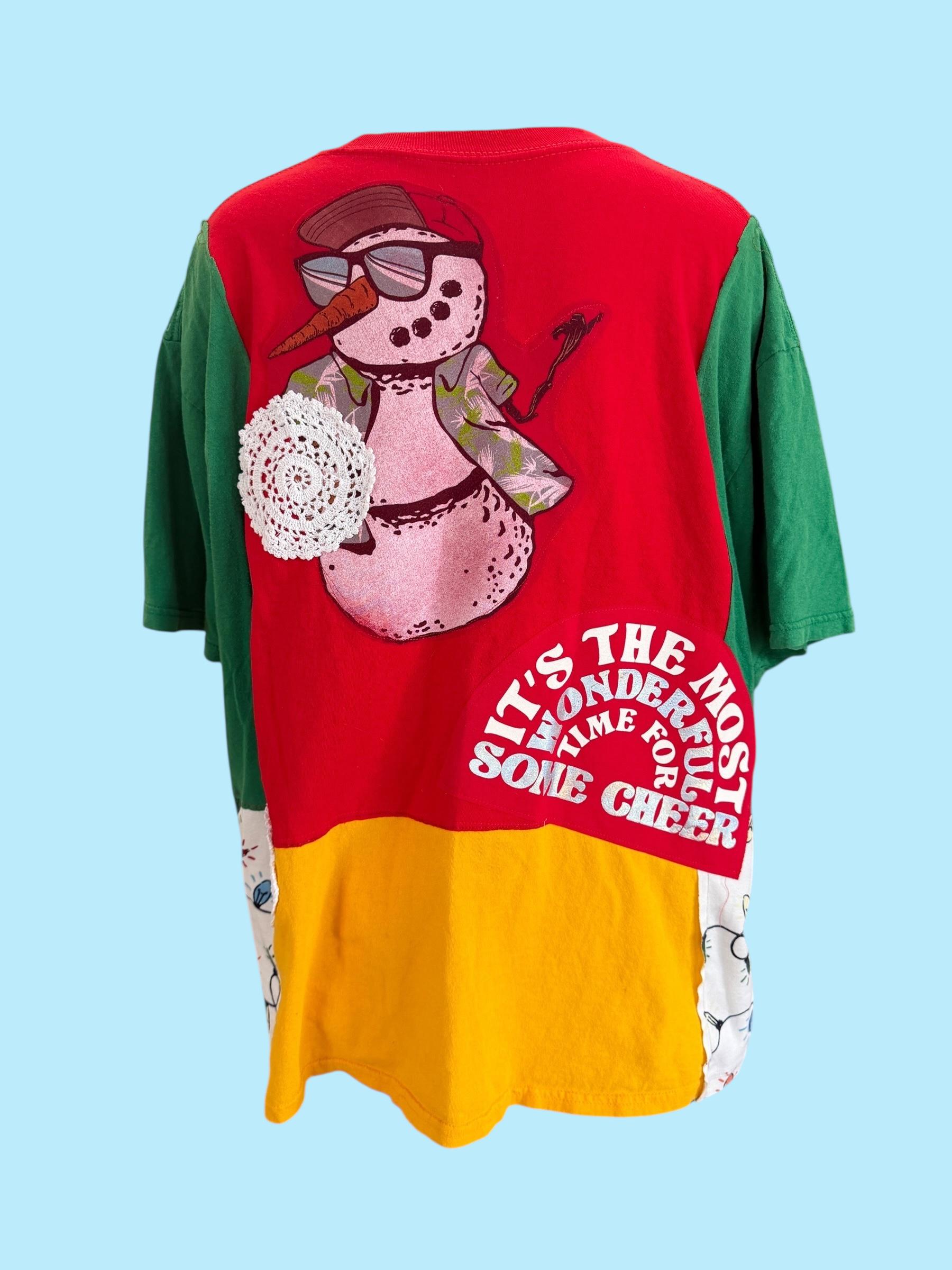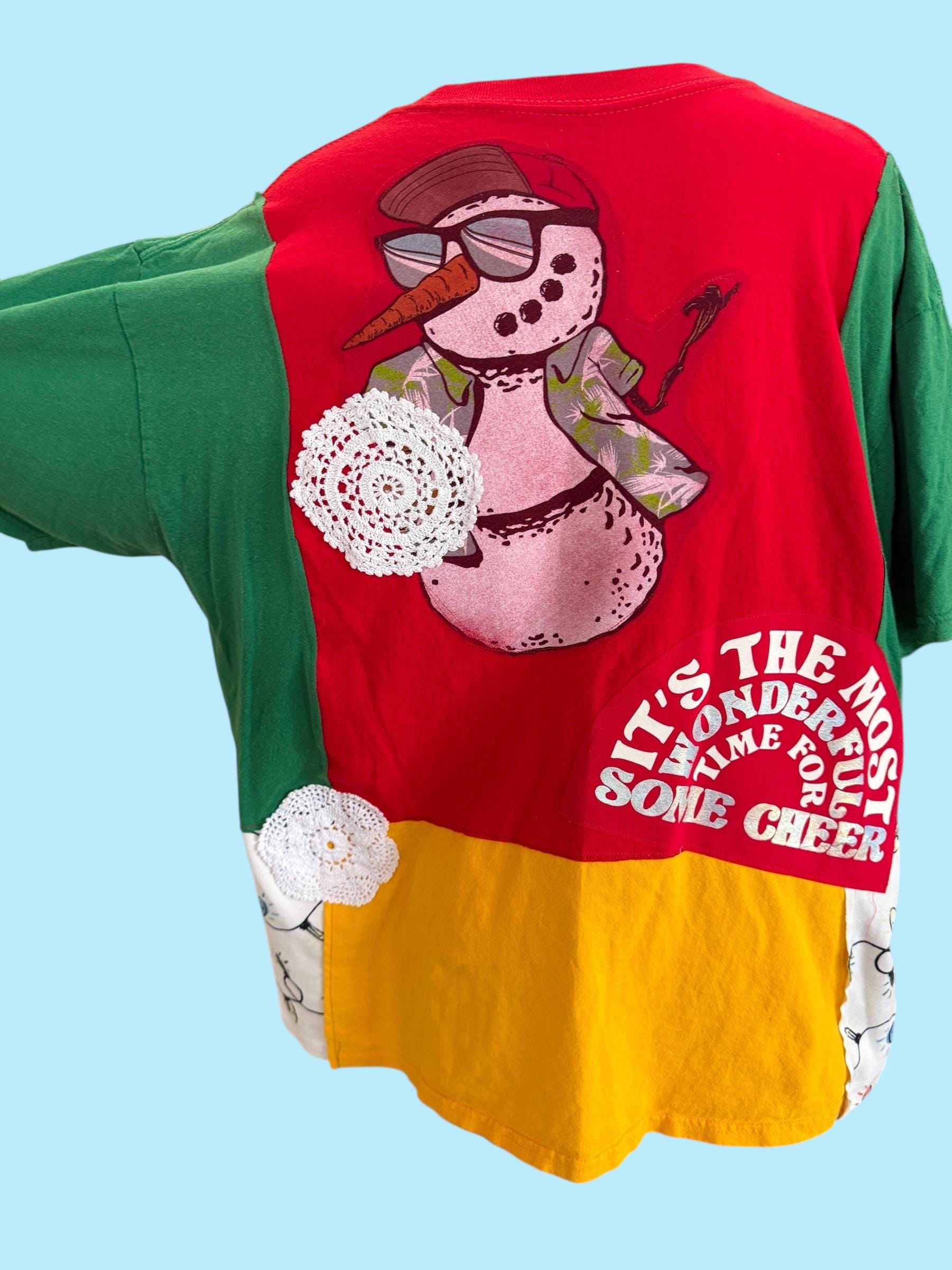 Holiday Funny Elf Snowman Patchwork Tunic Oversized Tunic