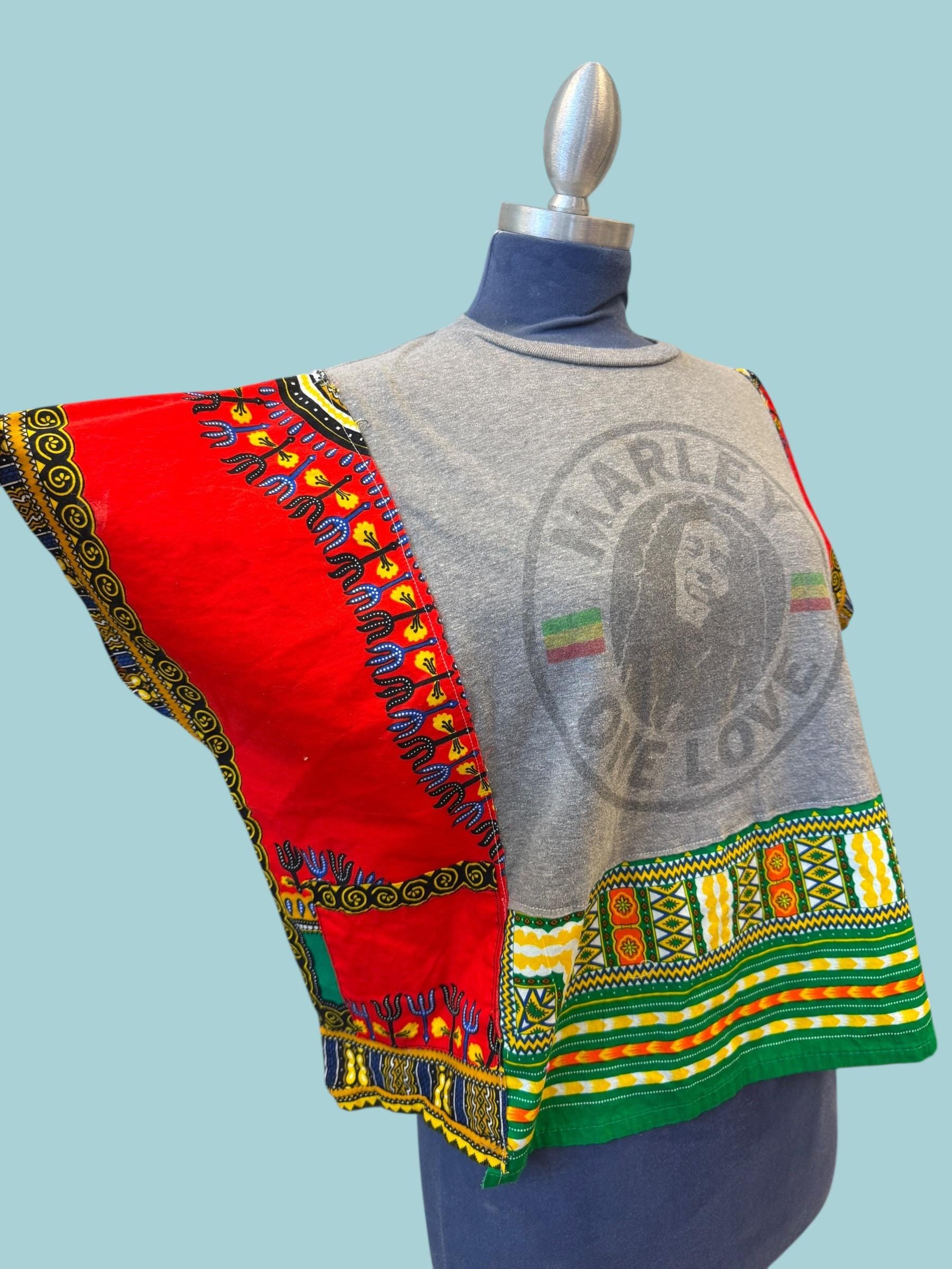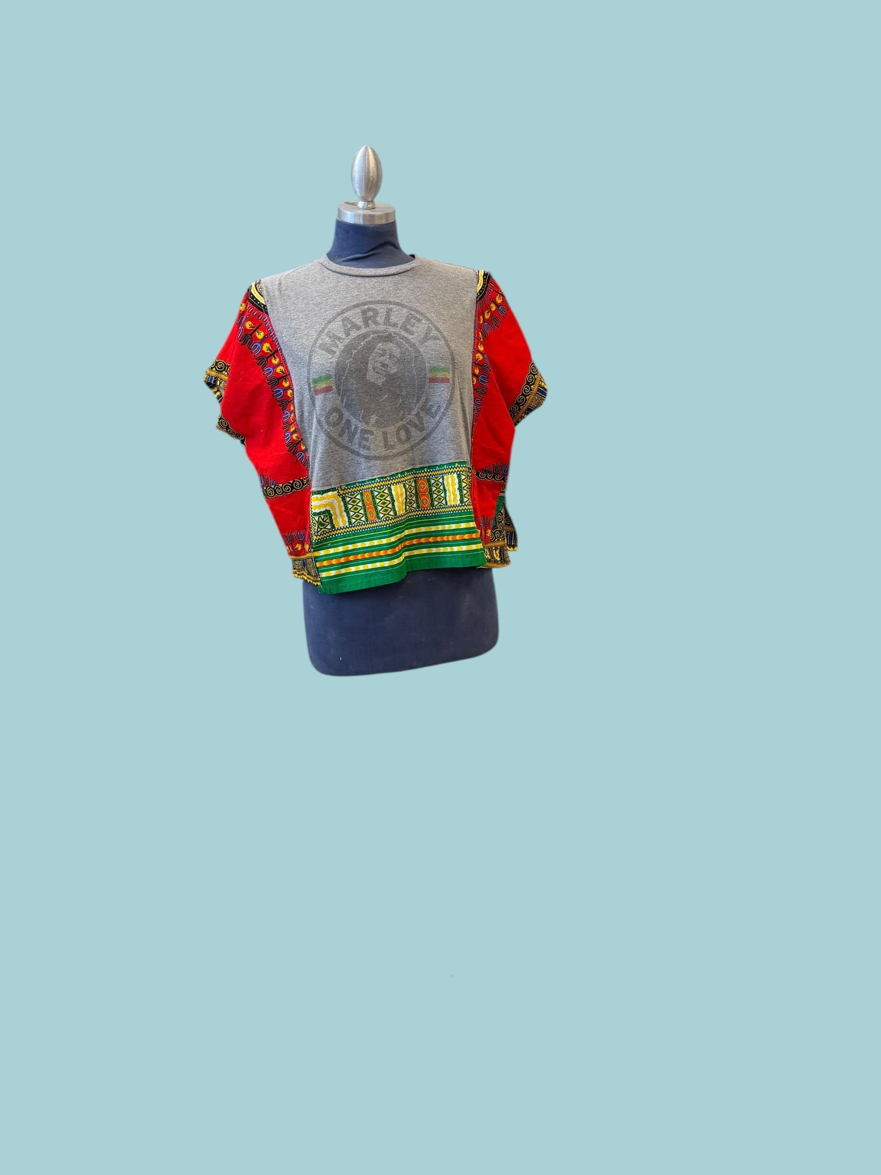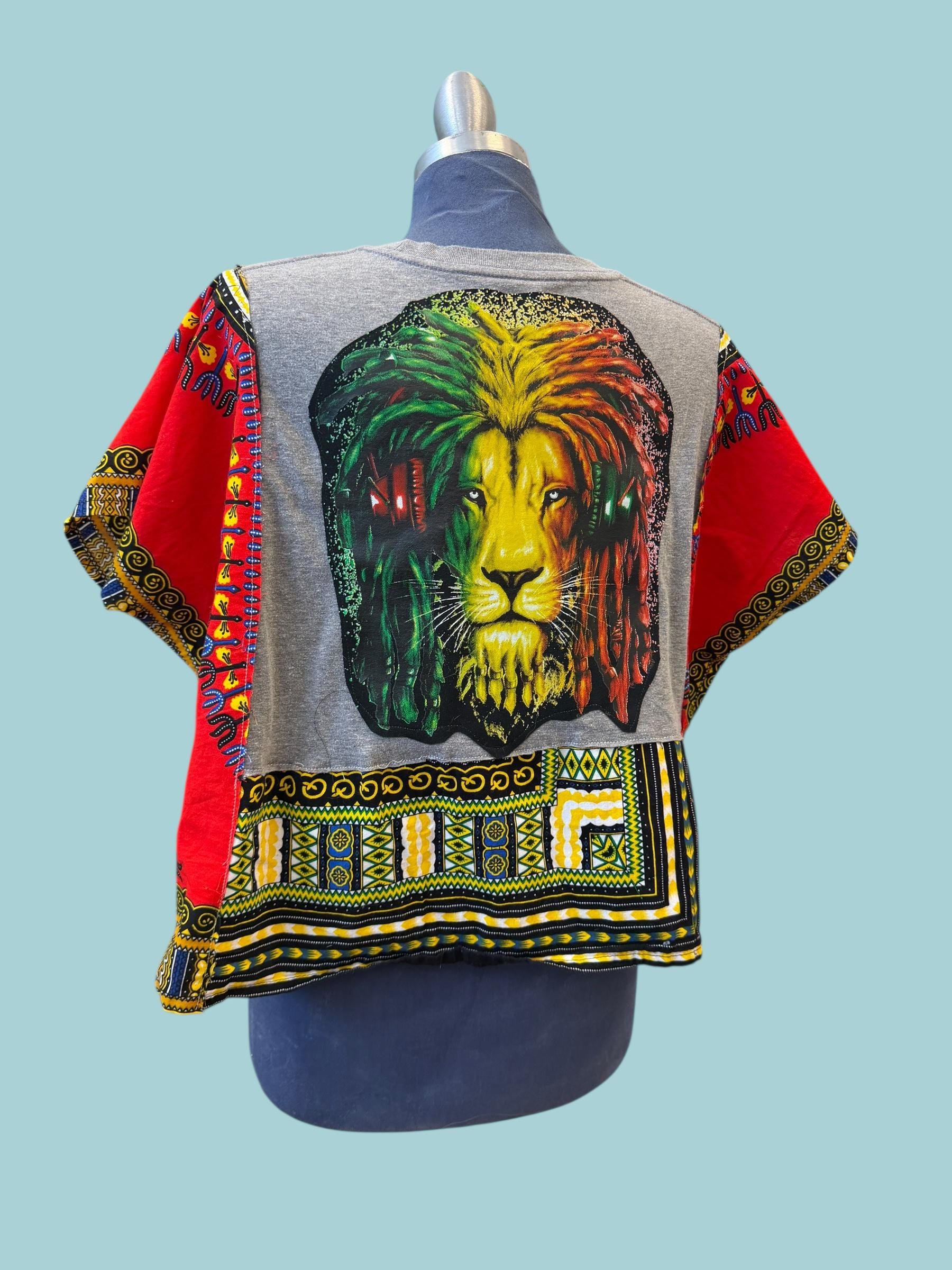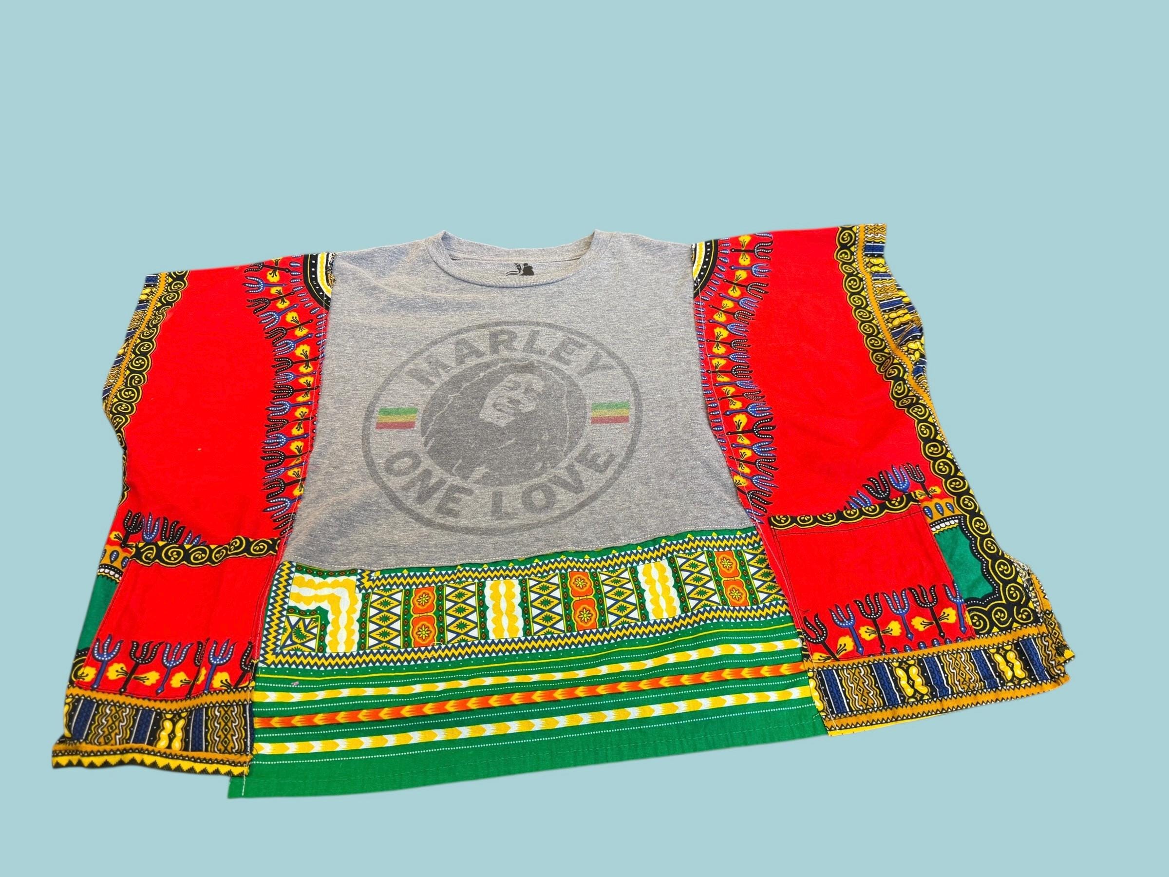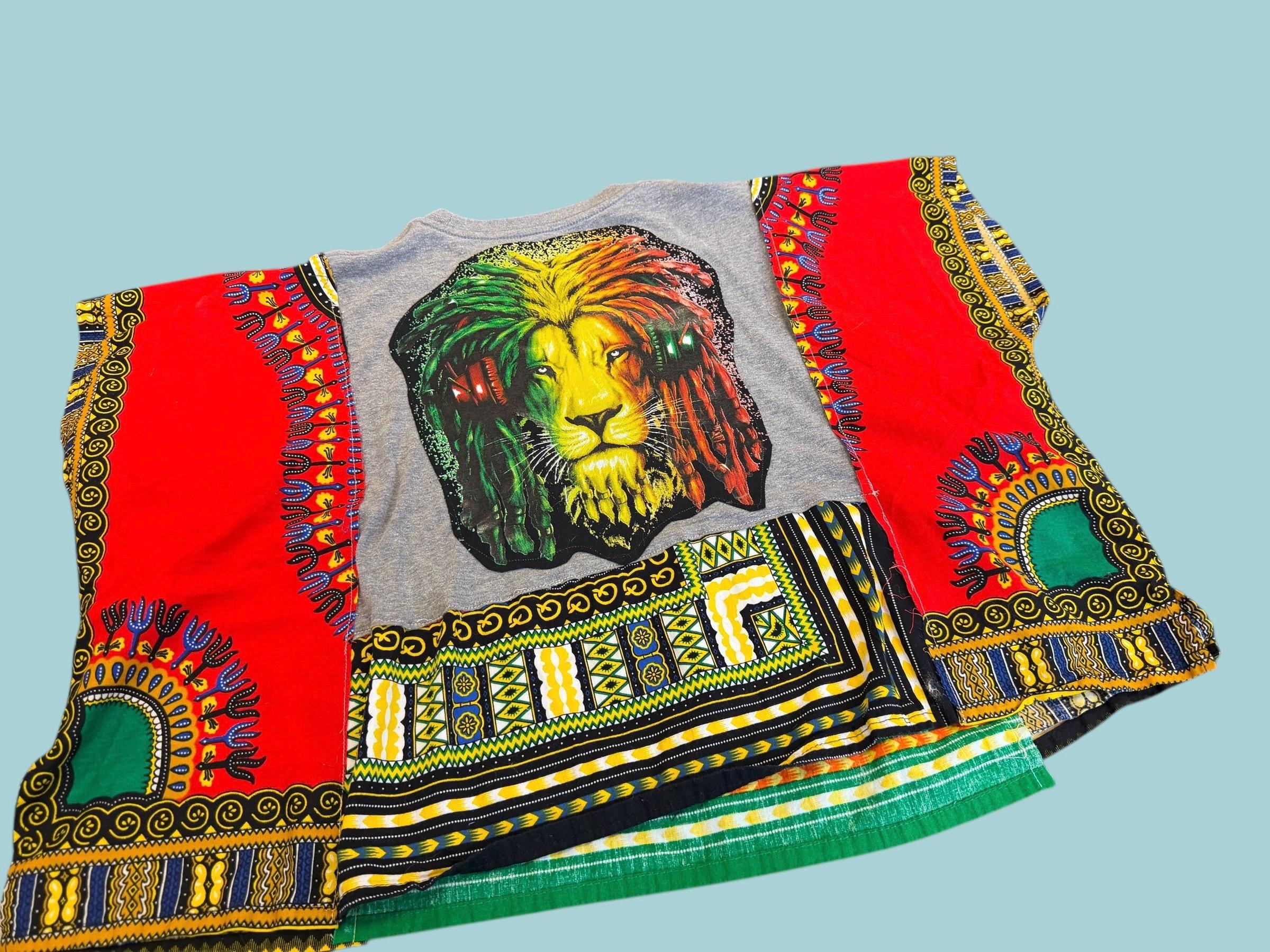 Bob Marley Lion Rasta T-shirt Tunic with African Cotton Print Oversized Small Medium